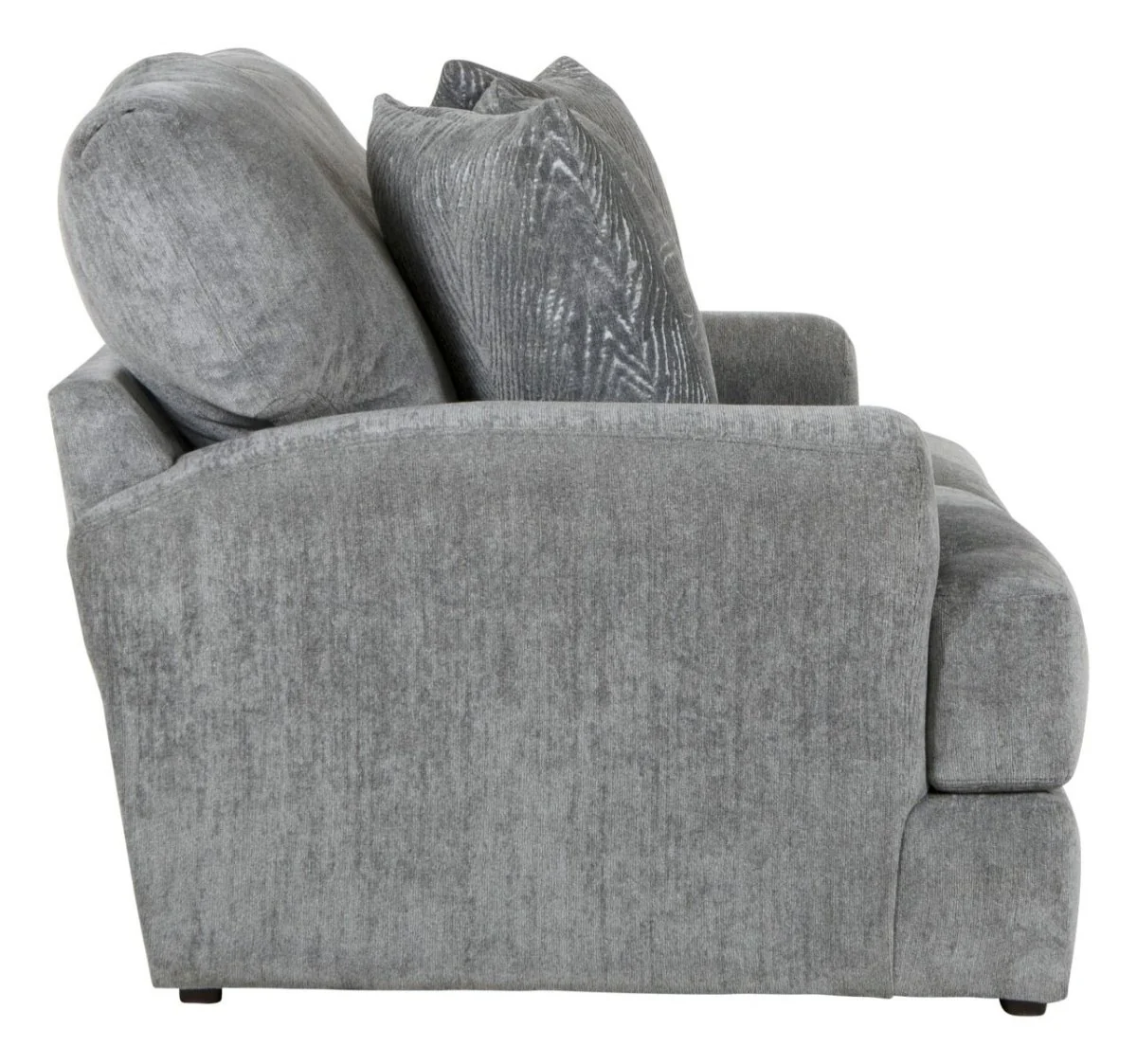 Luxuriously covered in Chenille body fabric, the Lamar Loveseat is made with Extra think "Cuddle cushion" for maximum comfort in the United States of America. Comes with large square arms on either side and extra accent pillows. The gray colors used in this item make for a shark finish.